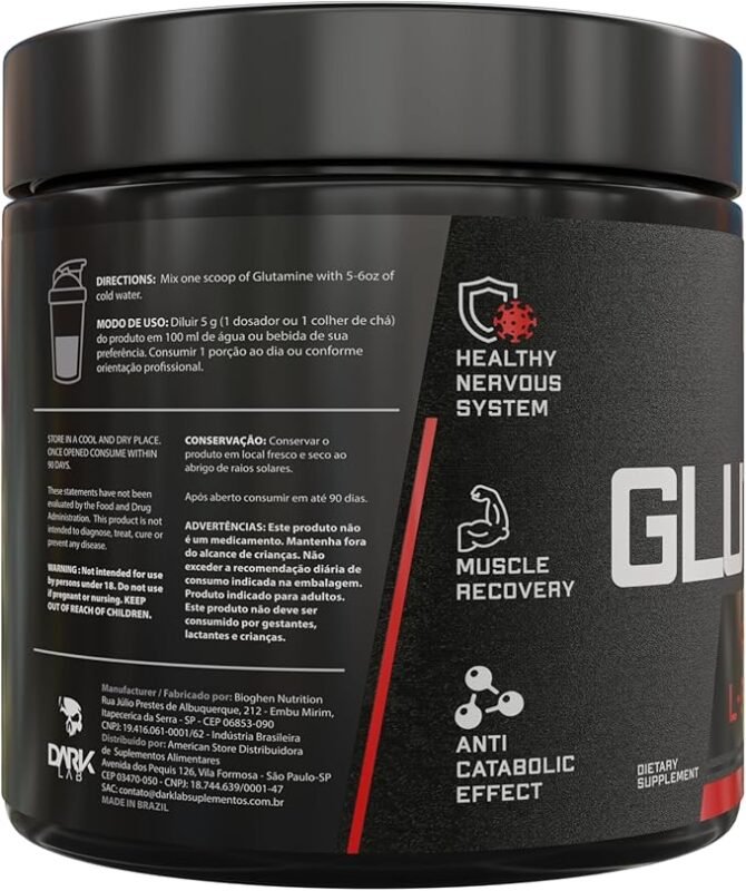 Em até 1x de R$ 21,75 sem juros Glutamina Dark Lab 100% Pura, 300g, Recuperação Muscular e Sistema Imunológico