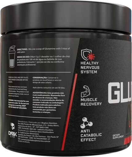 Glutamina Dark Lab 100% Pura, 300g, Recuperação Muscular e Sistema Imunológico