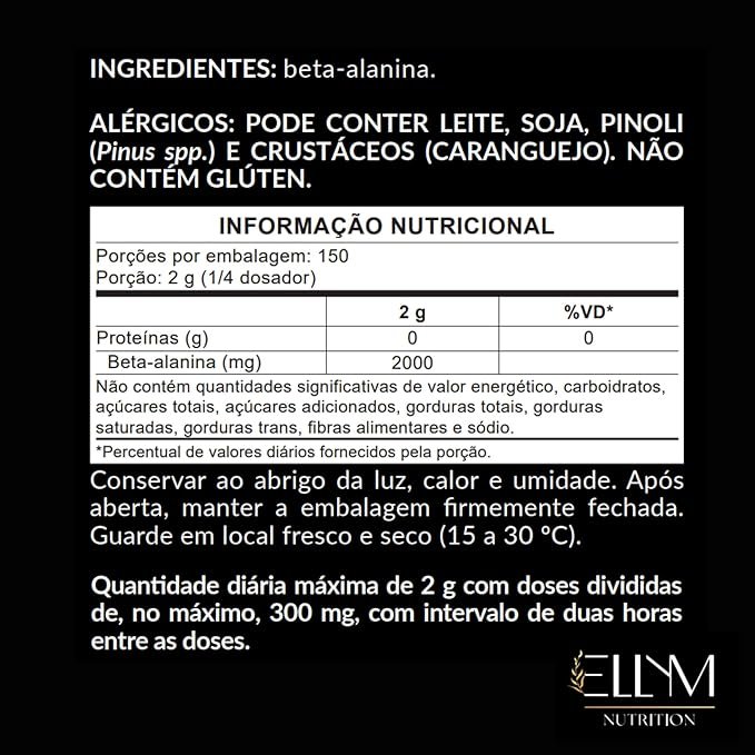 Beta Alanina Pura 300g ELLYM NUTRITION Performance Para Treino e Recuperação Muscular Pós Treino