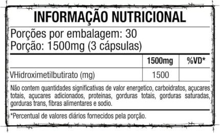 HMB (Hidroximetilbutirato), Hidróxido de cálcio – Ca(OH)2, farelo de arroz em pó (Oryza sativa), aipo marrom em pó (Apium graveolens L.), pimenta preta em pó (Piper nigrum), celulose vegetal, estearato de magnésio vegetal, dióxido de titânio e ácido esteárico vegetal. NÃO CONTÉM GLÚTEN.