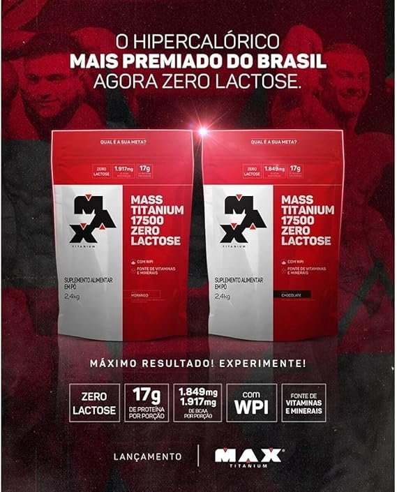 Mass Titanium 17500 Zero Lactose (2,4kg) Hipercalórico completo e sem lactose! MASS TITANIUM 17500 ZERO LACTOSE combina três fontes proteicas de alta biodisponibilidade e digestibilidade e duas fontes de carboidratos. Sua fórmula conta ainda com vitaminas e minerais que contribuem para a metabolização dos macronutrientes. BENEFÍCIOS: > Zero Lactose;> 17g de proteína por porção;> 1.849 mg de BCAA por porção;> Com WPI;> Auxilia na formação dos músculos;> Fonte de vitaminas e minerai.