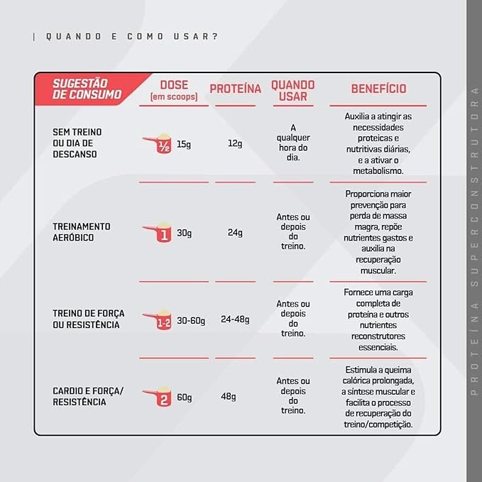 Ingredientes Sabor Chocolate: Proteína concentrada do soro do leite, cacau em pó, aromas idênticos aos naturais, edulcorantes sucralose e acessulfame de potássio e emulsificante lecitina de soja.